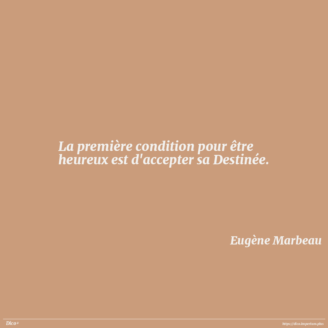 La première condition pour être heureux est d'accepter sa Destinée.