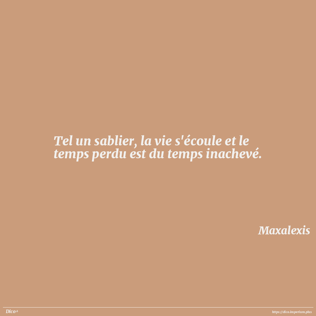 Tel un sablier, la vie s'écoule et le temps perdu est du temps inachevé.