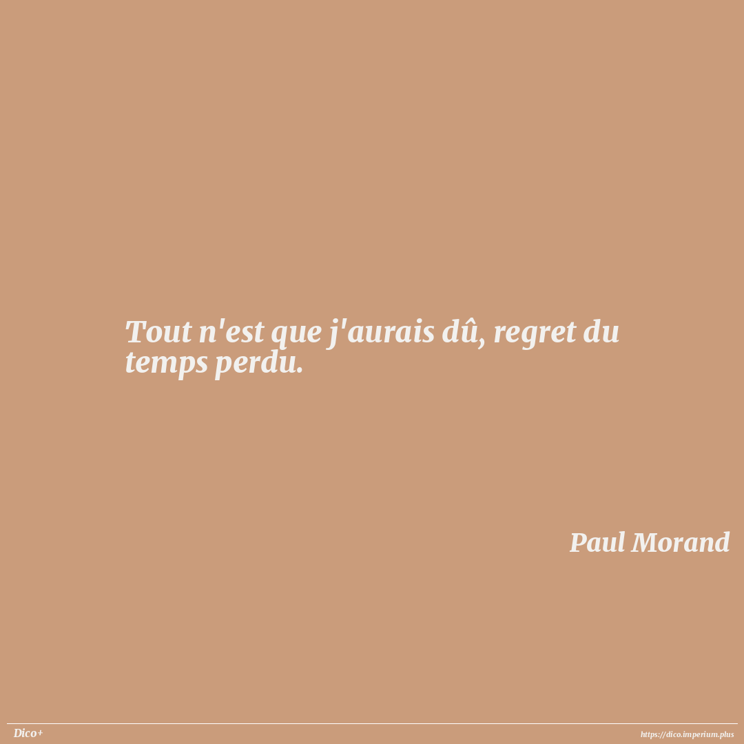 Tout n'est que j'aurais dû, regret du temps perdu.