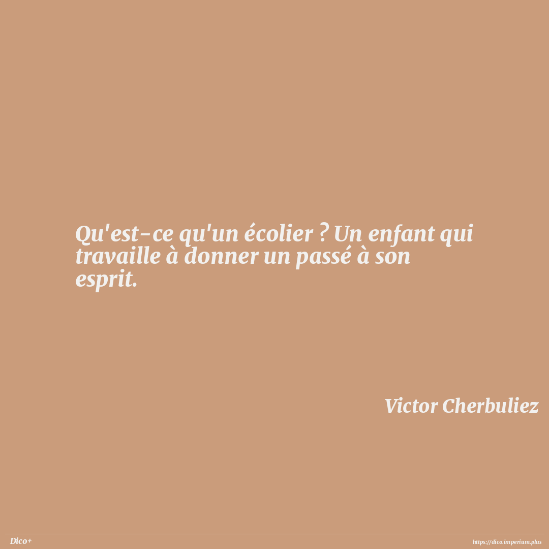 Qu'est-ce qu'un écolier ? Un enfant qui travaille à donner un passé à son esprit.