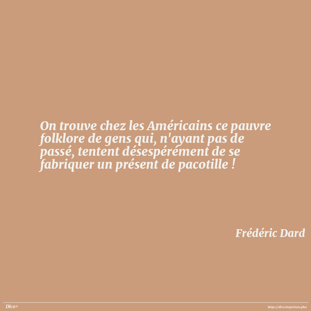 On trouve chez les Américains ce pauvre folklore de gens qui, n'ayant pas de passé, tentent désespérément de se fabriquer un présent de pacotille !