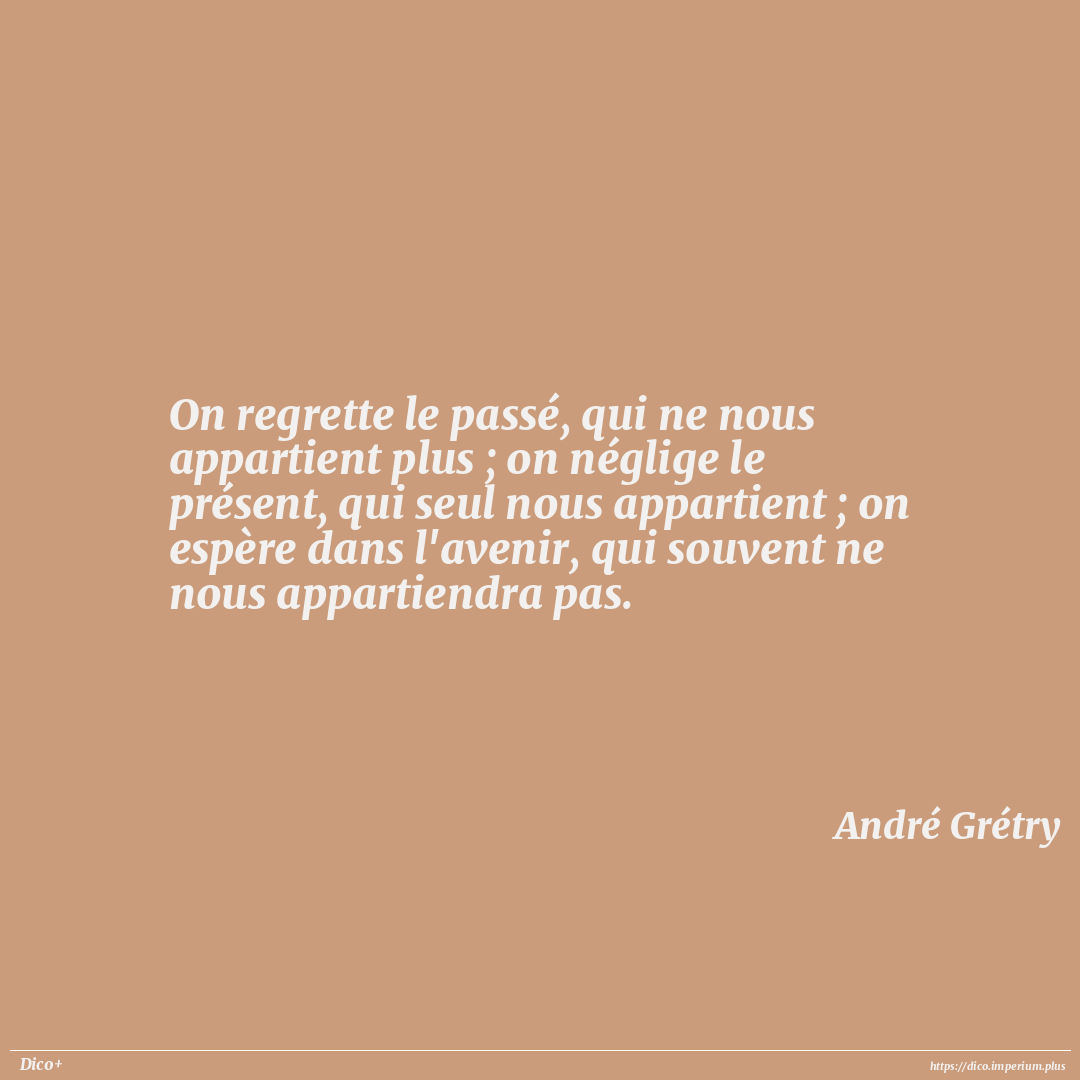On regrette le passé, qui ne nous appartient plus ; on néglige le présent, qui seul nous appartient ; on espère dans l'avenir, qui souvent ne nous appartiendra pas.