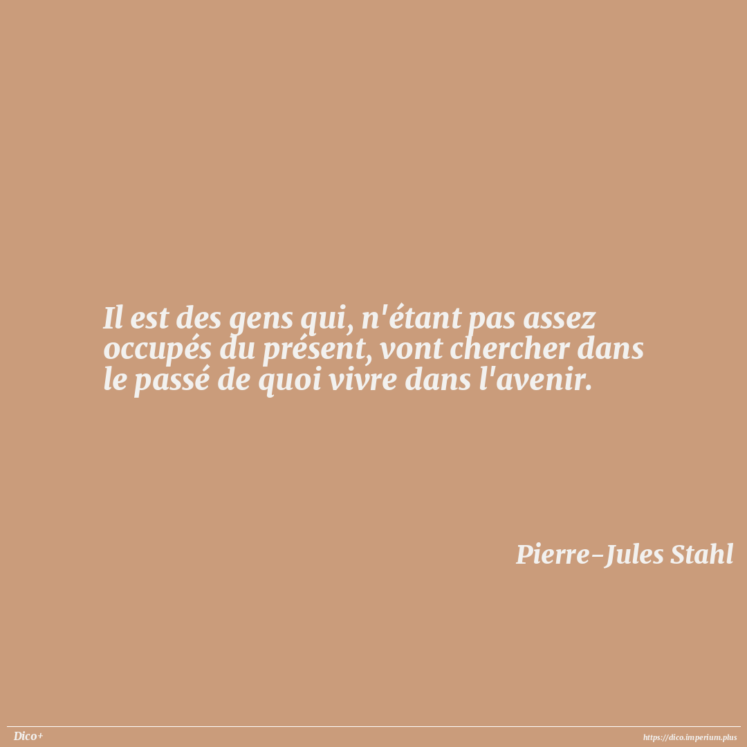 Il est des gens qui, n'étant pas assez occupés du présent, vont chercher dans le passé de quoi vivre dans l'avenir.