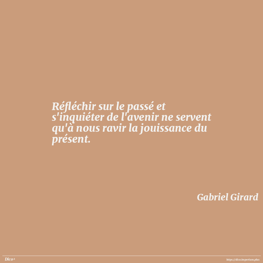 Réfléchir sur le passé et s'inquiéter de l'avenir ne servent qu'à nous ravir la jouissance du présent.