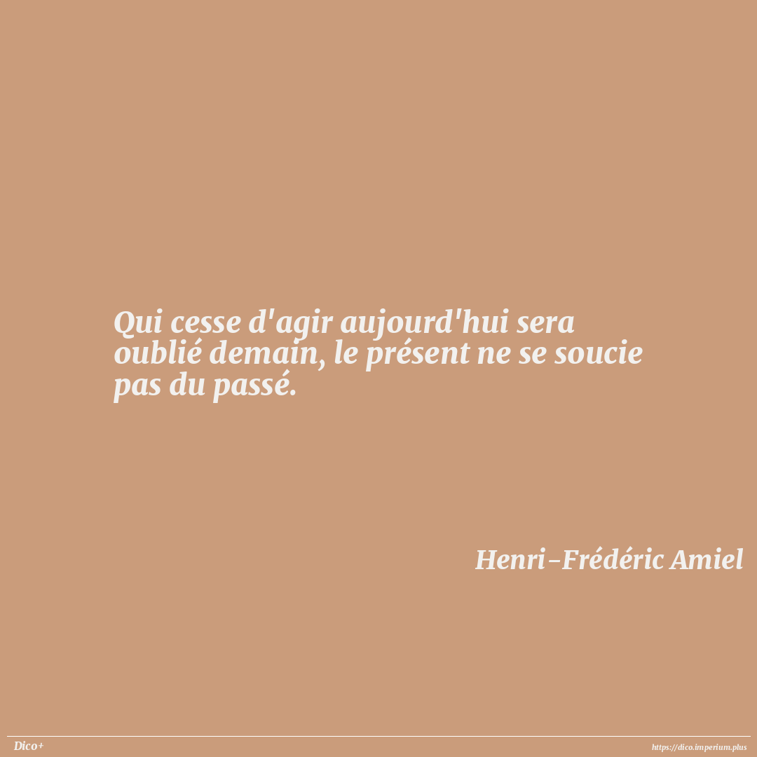 Qui cesse d'agir aujourd'hui sera oublié demain, le présent ne se soucie pas du passé.