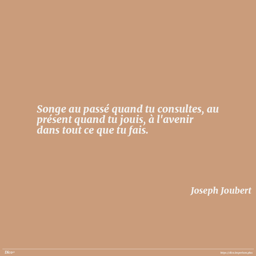 Songe au passé quand tu consultes, au présent quand tu jouis, à l'avenir dans tout ce que tu fais.
