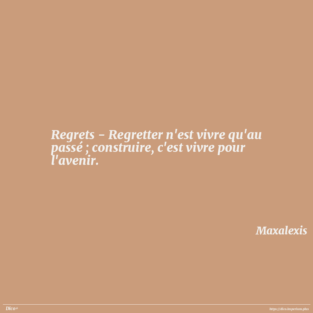 Regrets - Regretter n'est vivre qu'au passé ; construire, c'est vivre pour l'avenir.