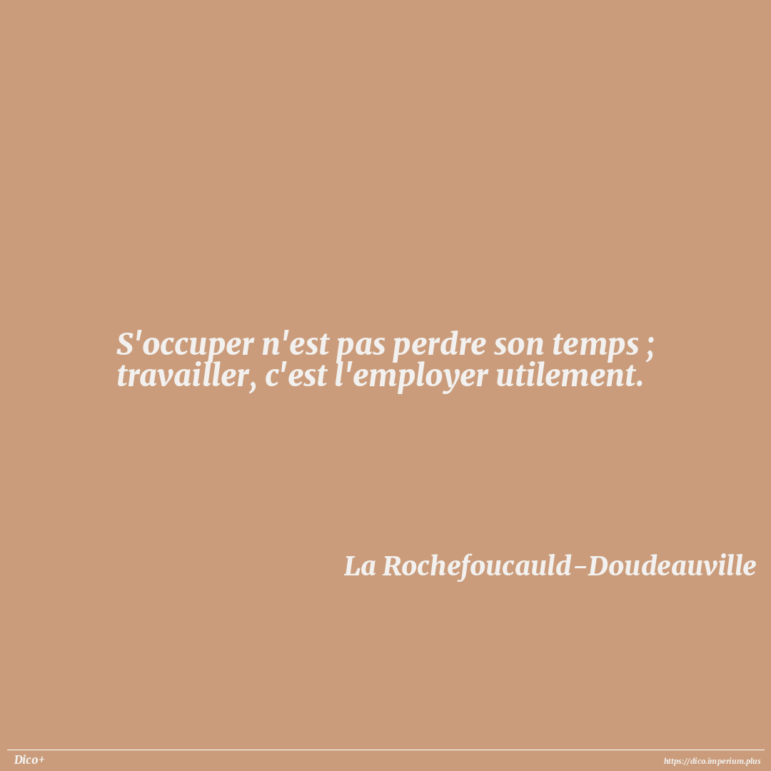 S'occuper n'est pas perdre son temps ; travailler, c'est l'employer utilement.