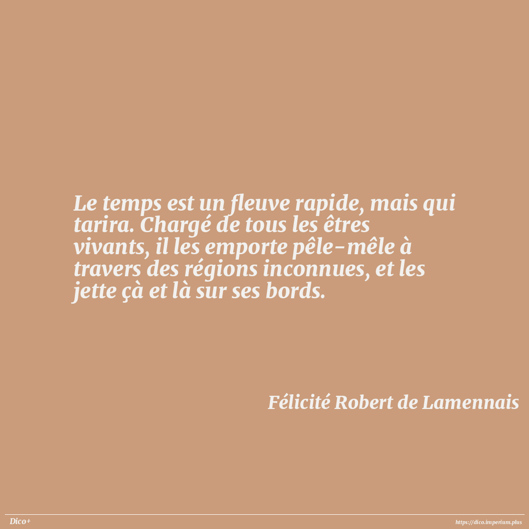 Le temps est un fleuve rapide, mais qui tarira. Chargé de tous les êtres vivants, il les emporte pêle-mêle à travers des régions inconnues, et les jette çà et là sur ses bords.