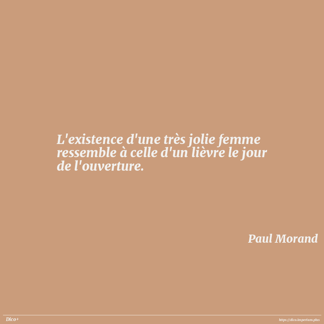 L'existence d'une très jolie femme ressemble à celle d'un lièvre le jour de l'ouverture.