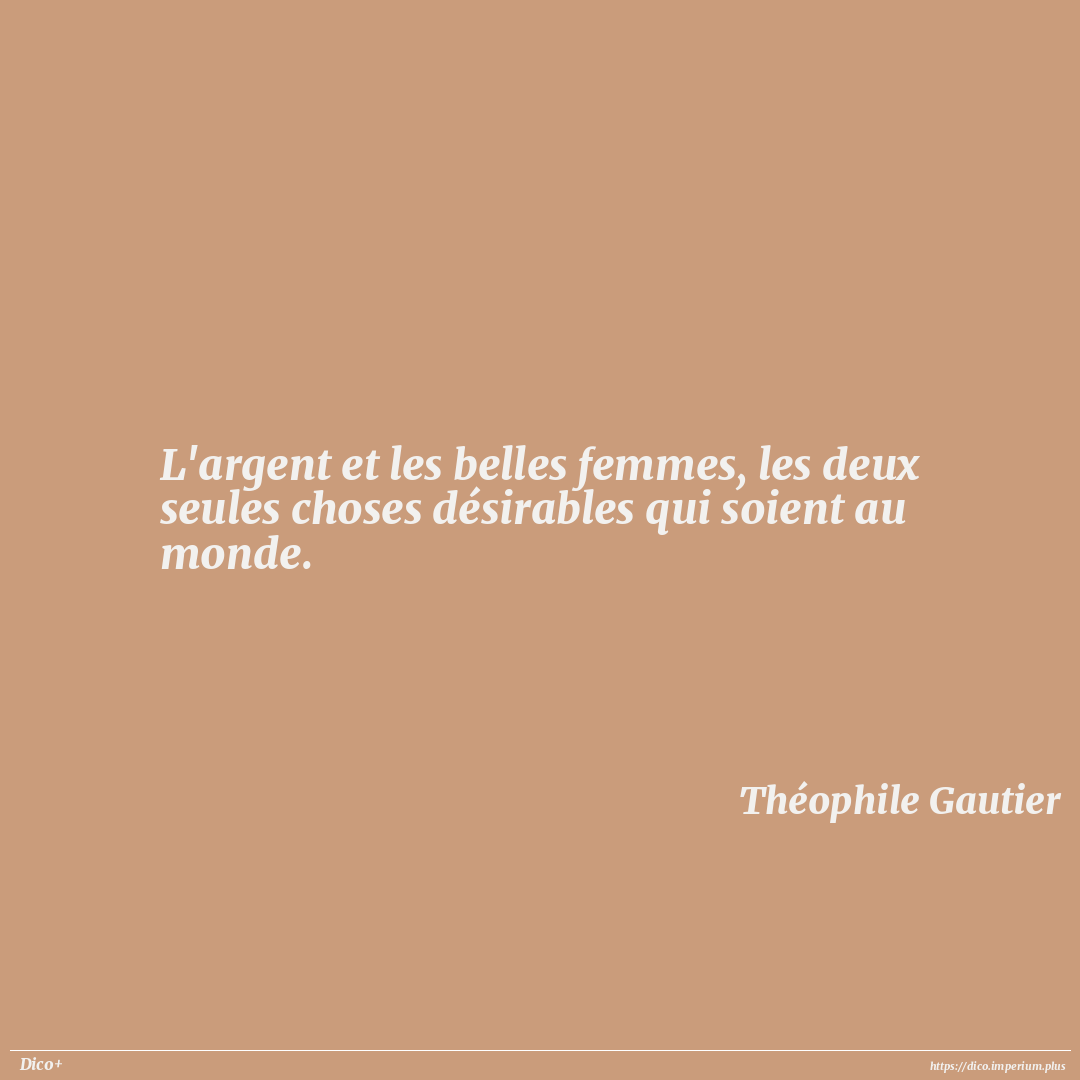 L'argent et les belles femmes, les deux seules choses désirables qui soient au monde.