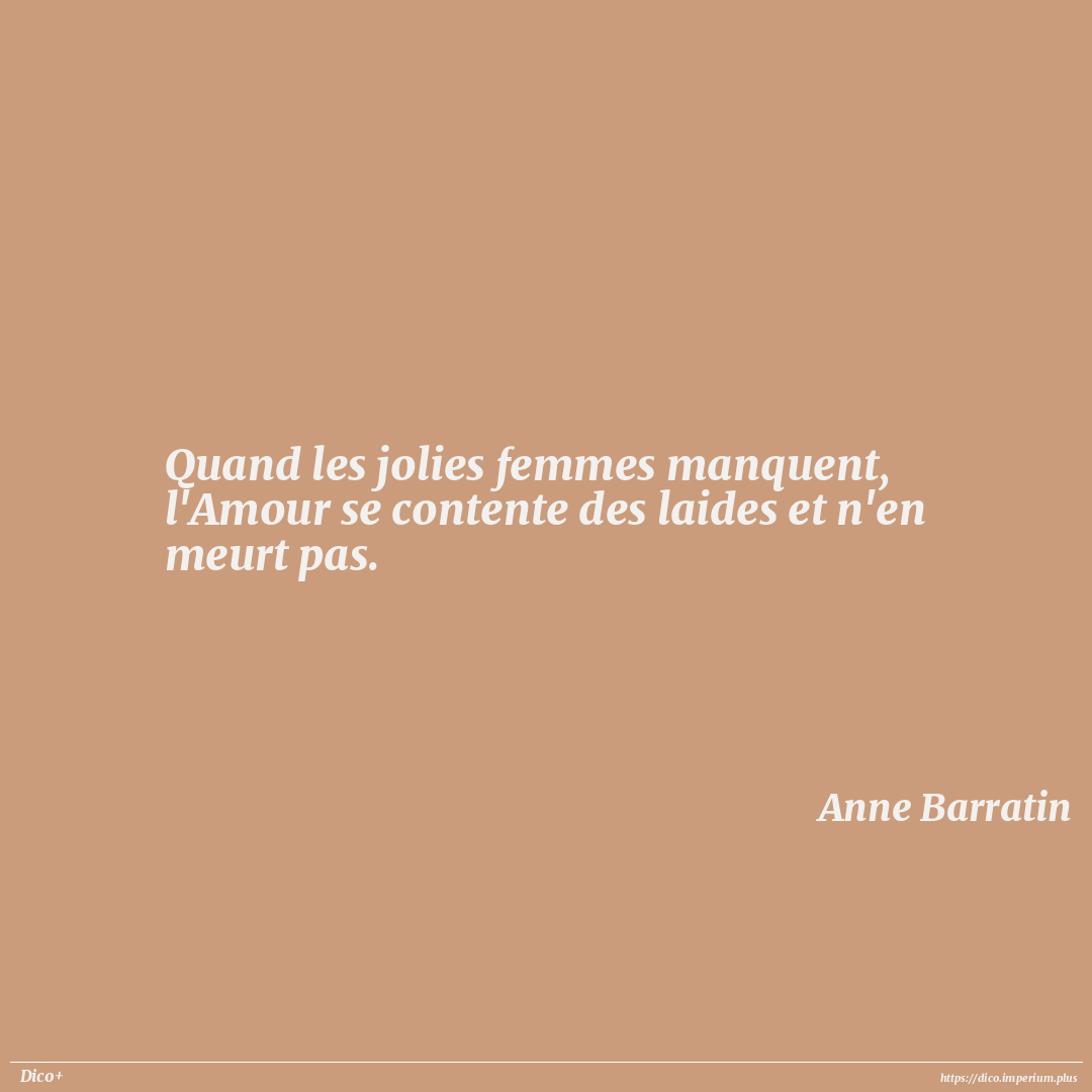 Quand les jolies femmes manquent, l'Amour se contente des laides et n'en meurt pas.