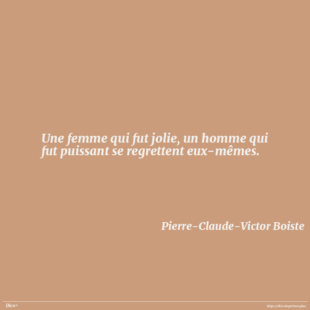 Une femme qui fut jolie, un homme qui fut puissant se regrettent eux-mêmes.