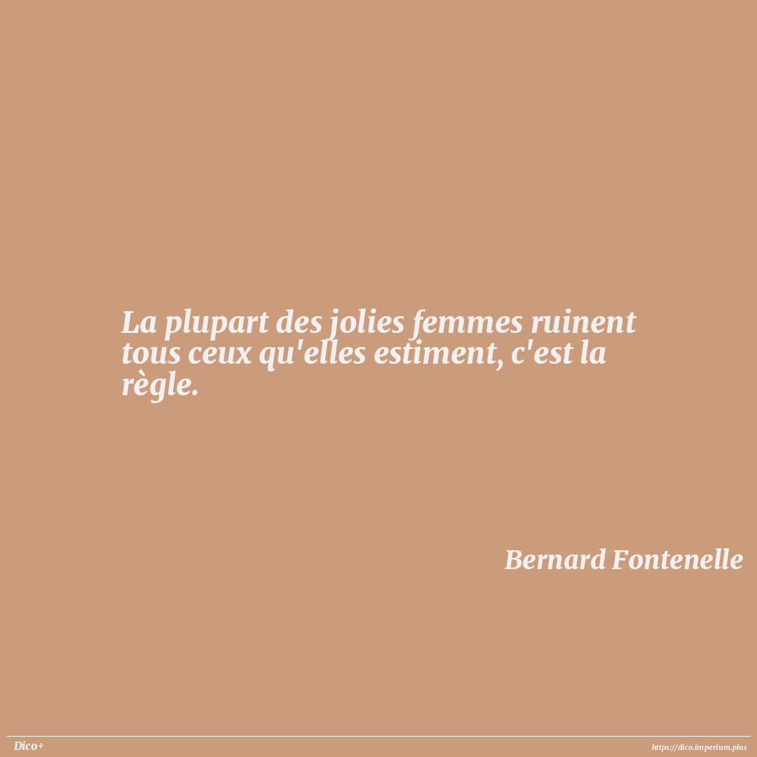 La plupart des jolies femmes ruinent tous ceux qu'elles estiment, c'est la règle.