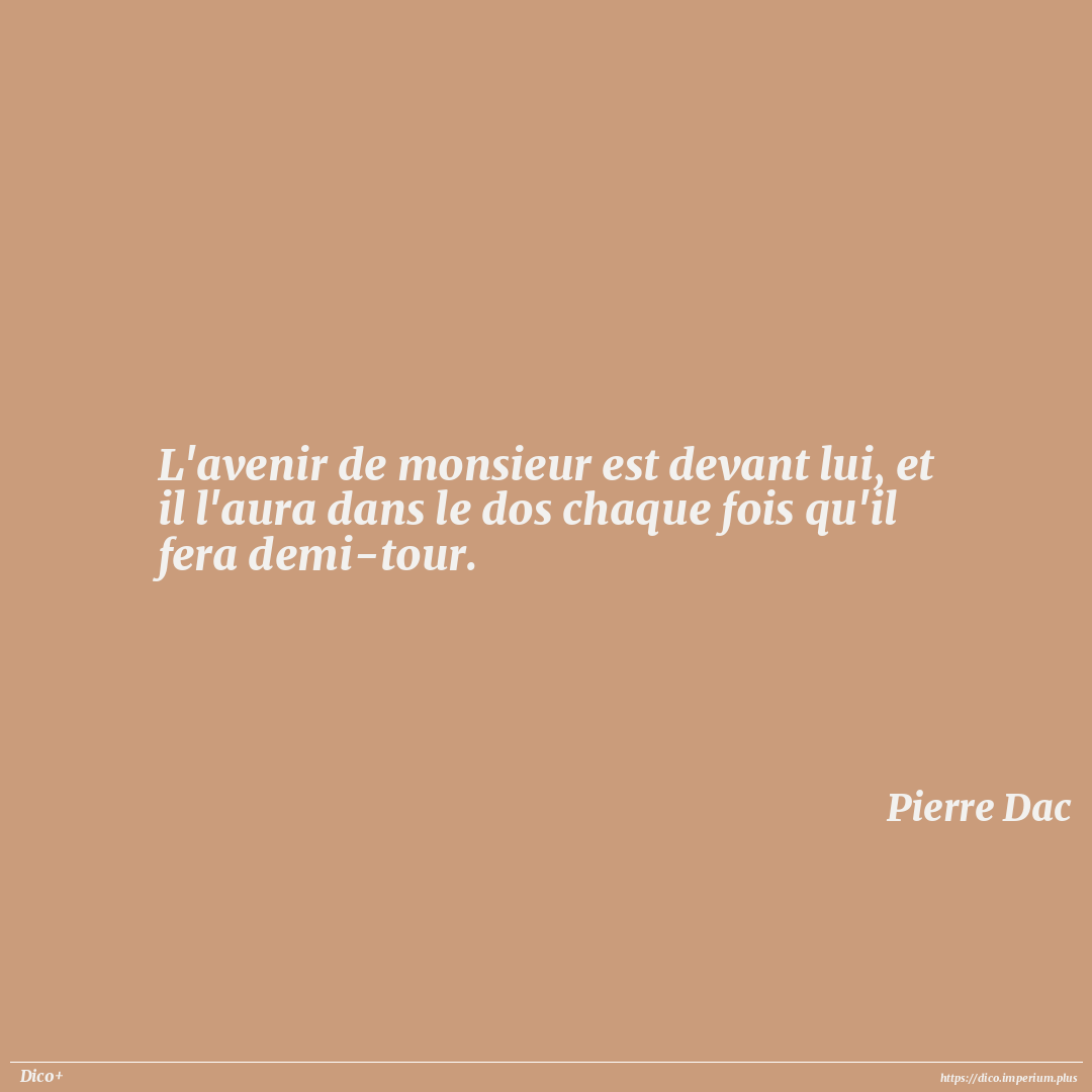 L'avenir de monsieur est devant lui, et il l'aura dans le dos chaque fois qu'il fera demi-tour.