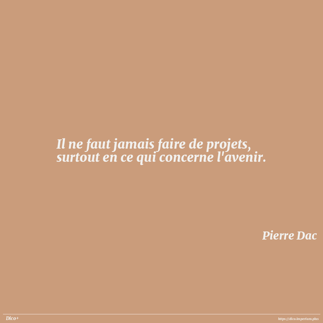 Il ne faut jamais faire de projets, surtout en ce qui concerne l'avenir.