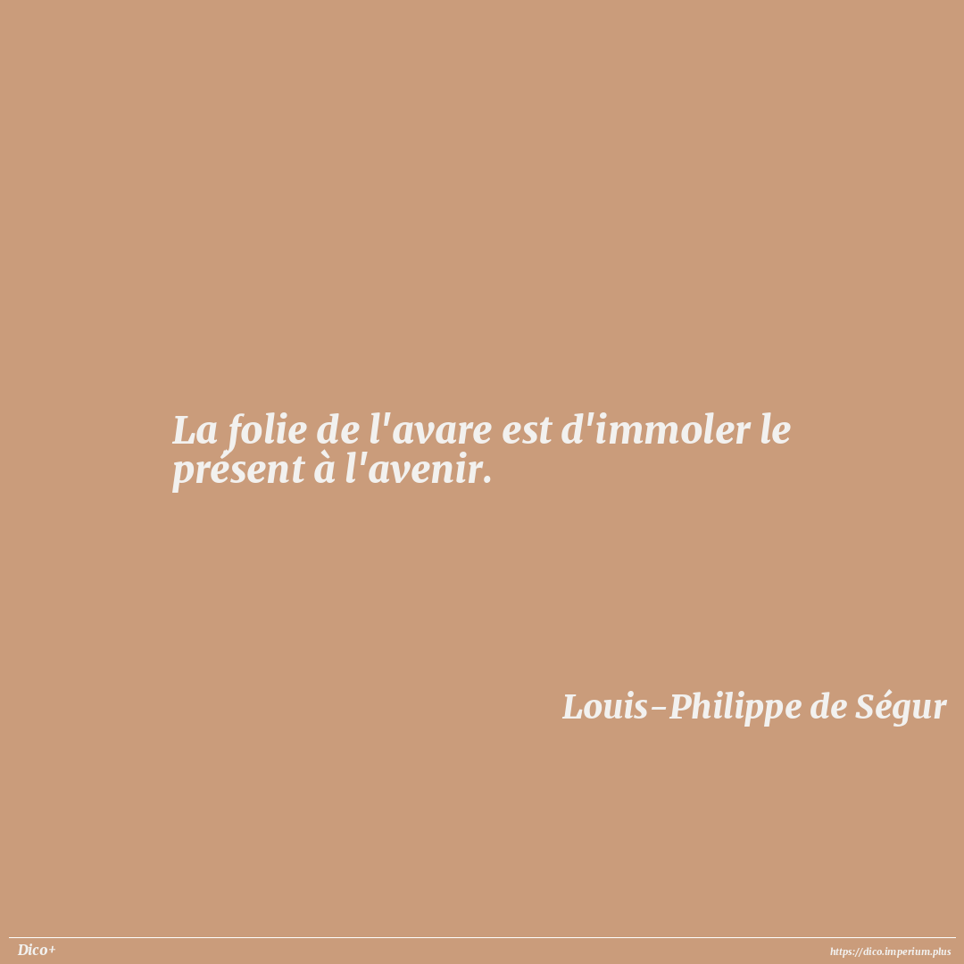 La folie de l'avare est d'immoler le présent à l'avenir.
