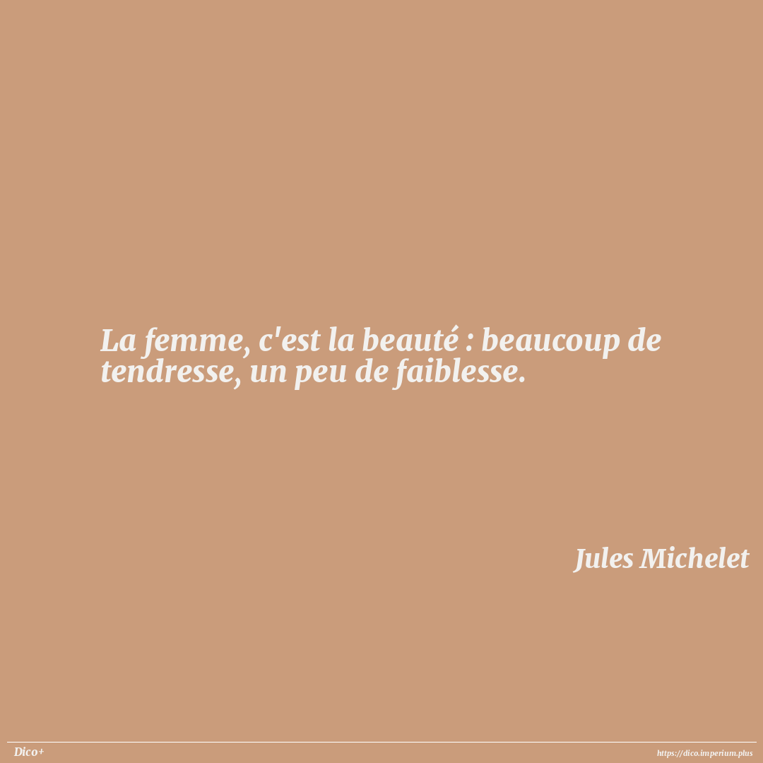La femme, c'est la beauté : beaucoup de tendresse, un peu de faiblesse.