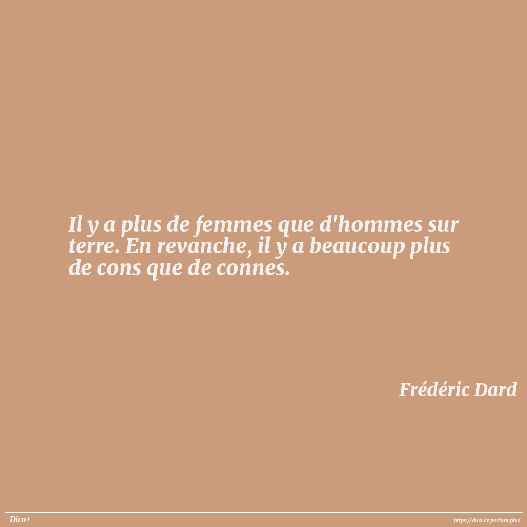 Il y a plus de femmes que d'hommes sur terre. En revanche, il y a beaucoup plus de cons que de connes.