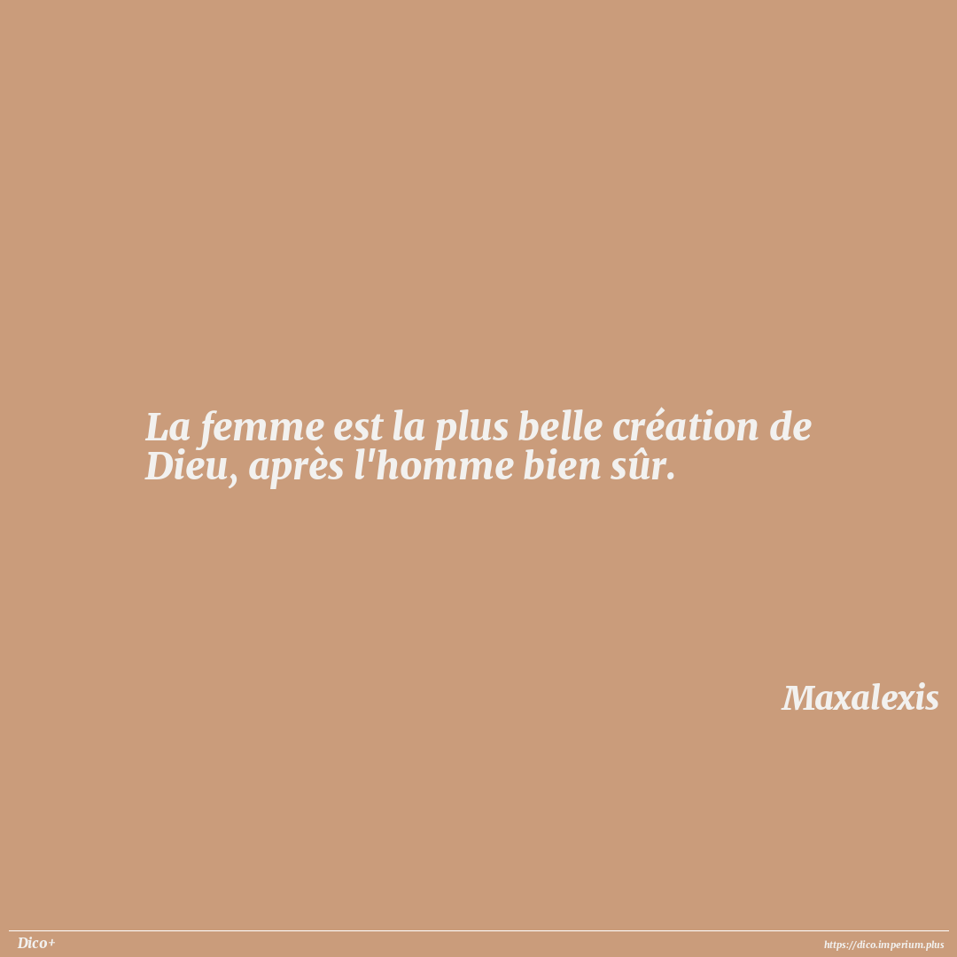 La femme est la plus belle création de Dieu, après l'homme bien sûr.