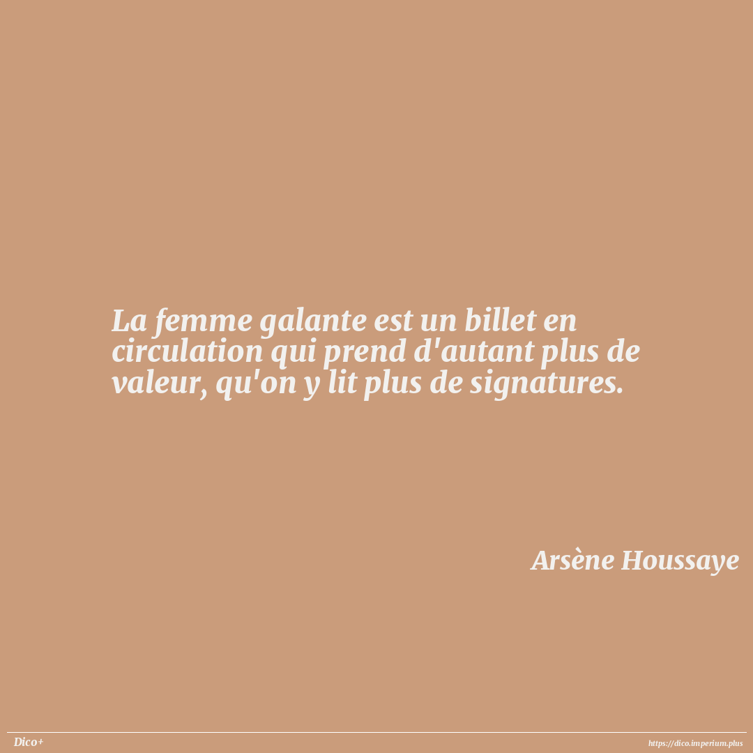 La femme galante est un billet en circulation qui prend d'autant plus de valeur, qu'on y lit plus de signatures.