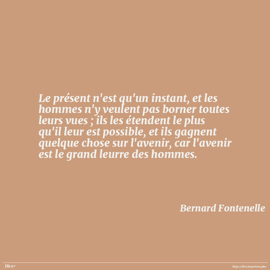 Le présent n'est qu'un instant, et les hommes n'y veulent pas borner toutes leurs vues ; ils les étendent le plus qu'il leur est possible, et ils gagnent quelque chose sur l'avenir, car l'avenir est le grand leurre des hommes.