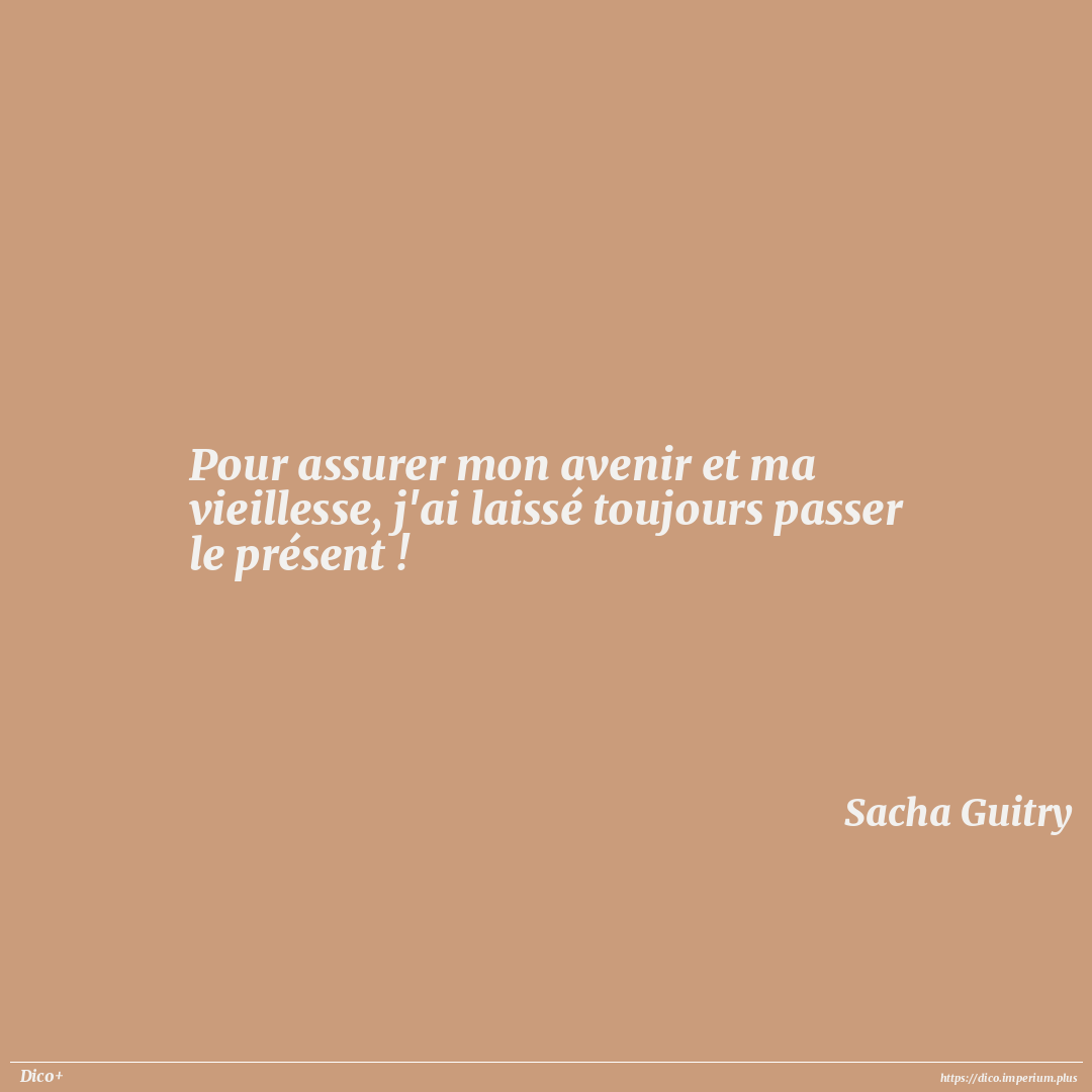 Pour assurer mon avenir et ma vieillesse, j'ai laissé toujours passer le présent !