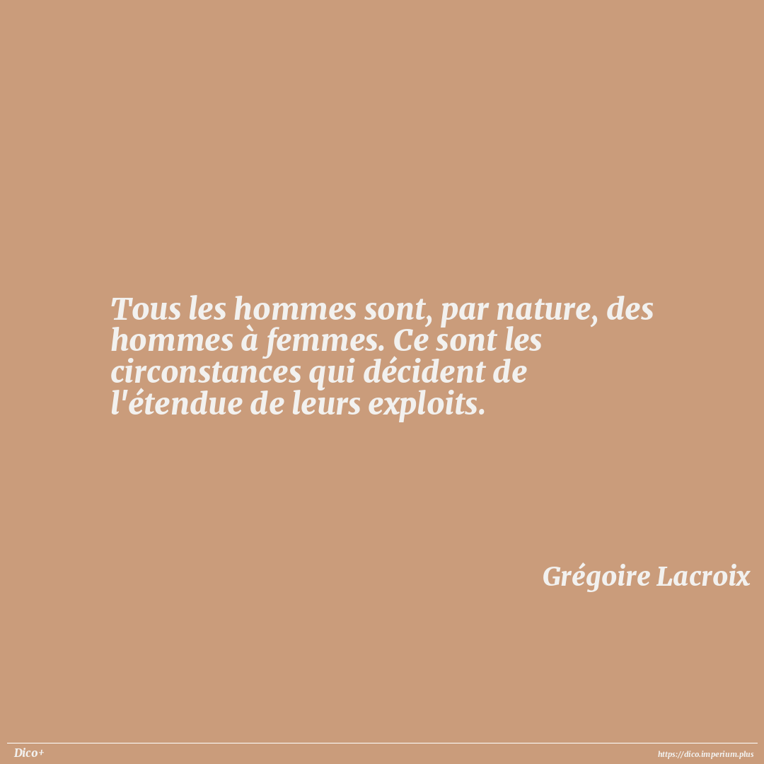 Tous les hommes sont, par nature, des hommes à femmes. Ce sont les circonstances qui décident de l'étendue de leurs exploits.