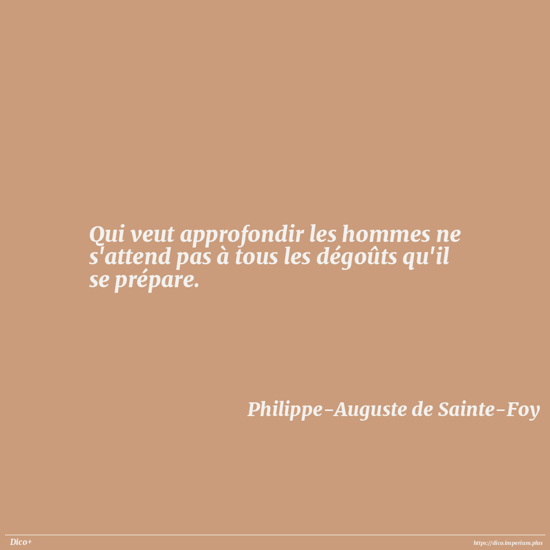 Qui veut approfondir les hommes ne s'attend pas à tous les dégoûts qu'il se prépare.