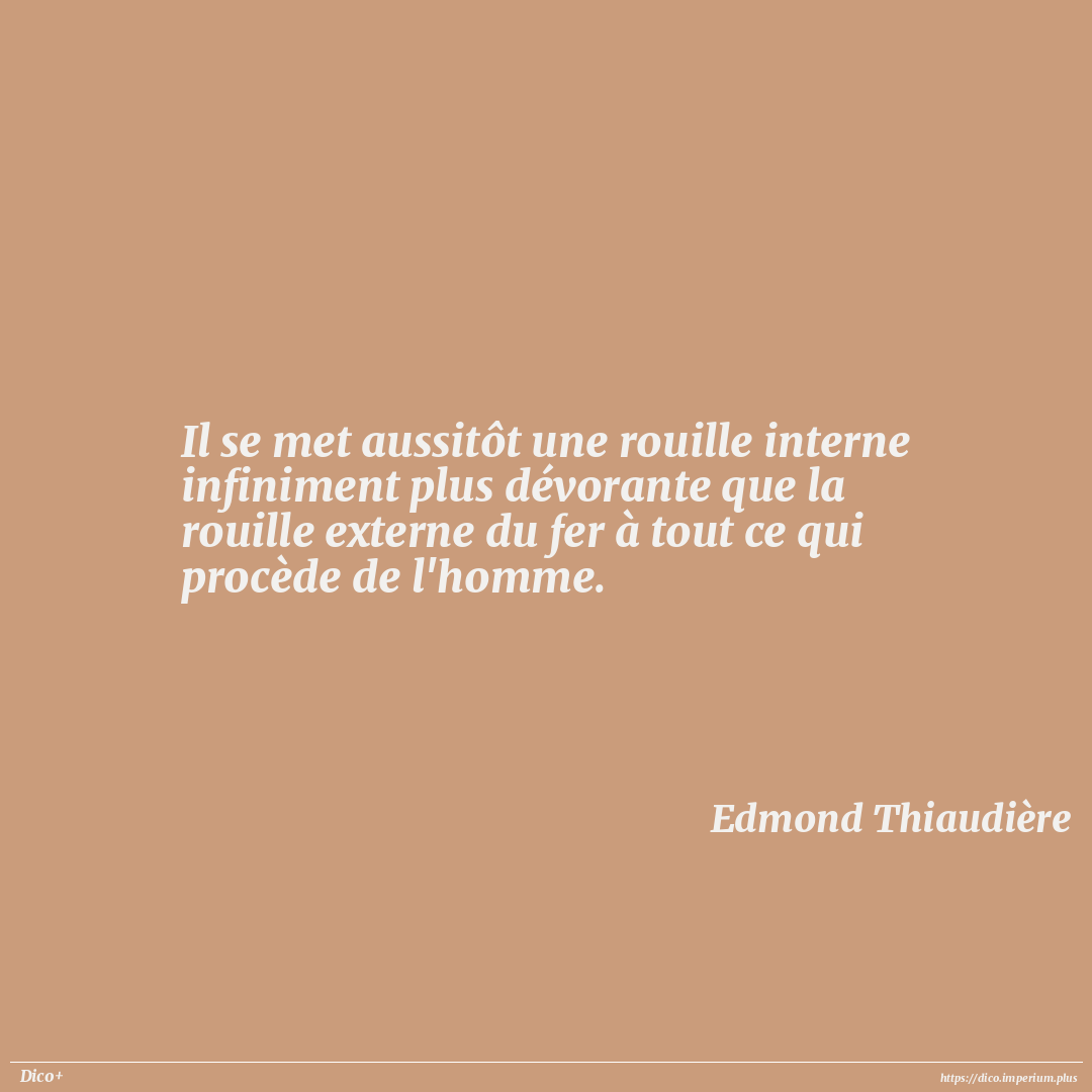 Il se met aussitôt une rouille interne infiniment plus dévorante que la rouille externe du fer à tout ce qui procède de l'homme.