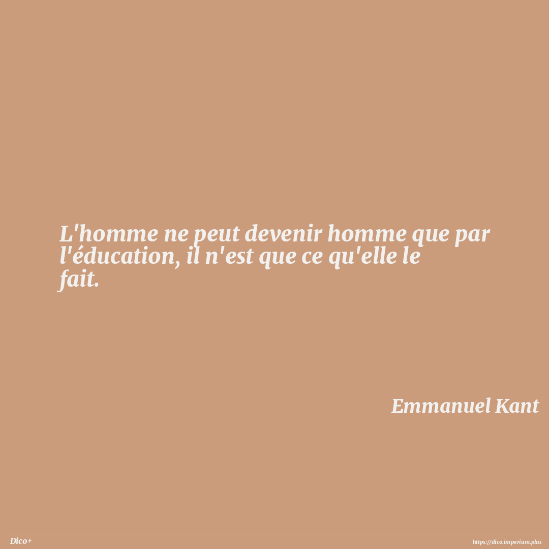 L'homme ne peut devenir homme que par l'éducation, il n'est que ce qu'elle le fait.