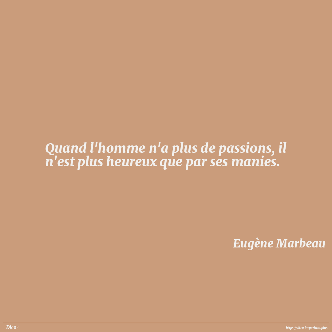 Quand l'homme n'a plus de passions, il n'est plus heureux que par ses manies.
