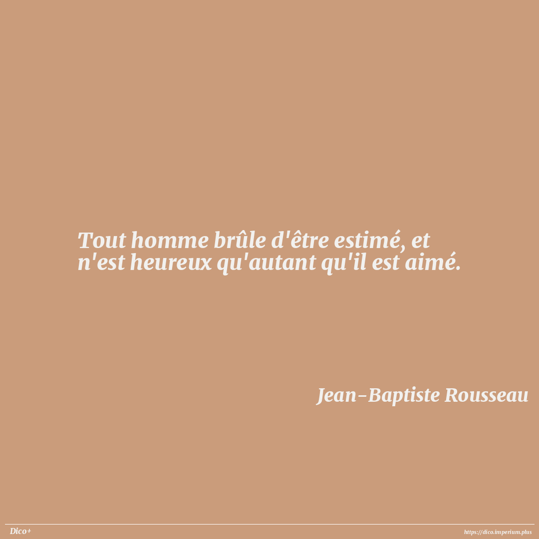 Tout homme brûle d'être estimé, et n'est heureux qu'autant qu'il est aimé.