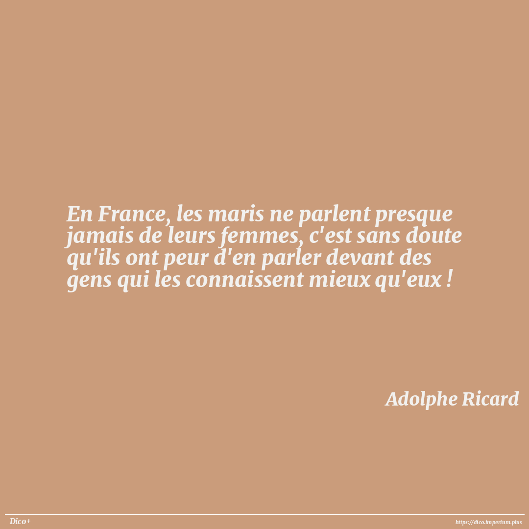 En France, les maris ne parlent presque jamais de leurs femmes, c'est sans doute qu'ils ont peur d'en parler devant des gens qui les connaissent mieux qu'eux !