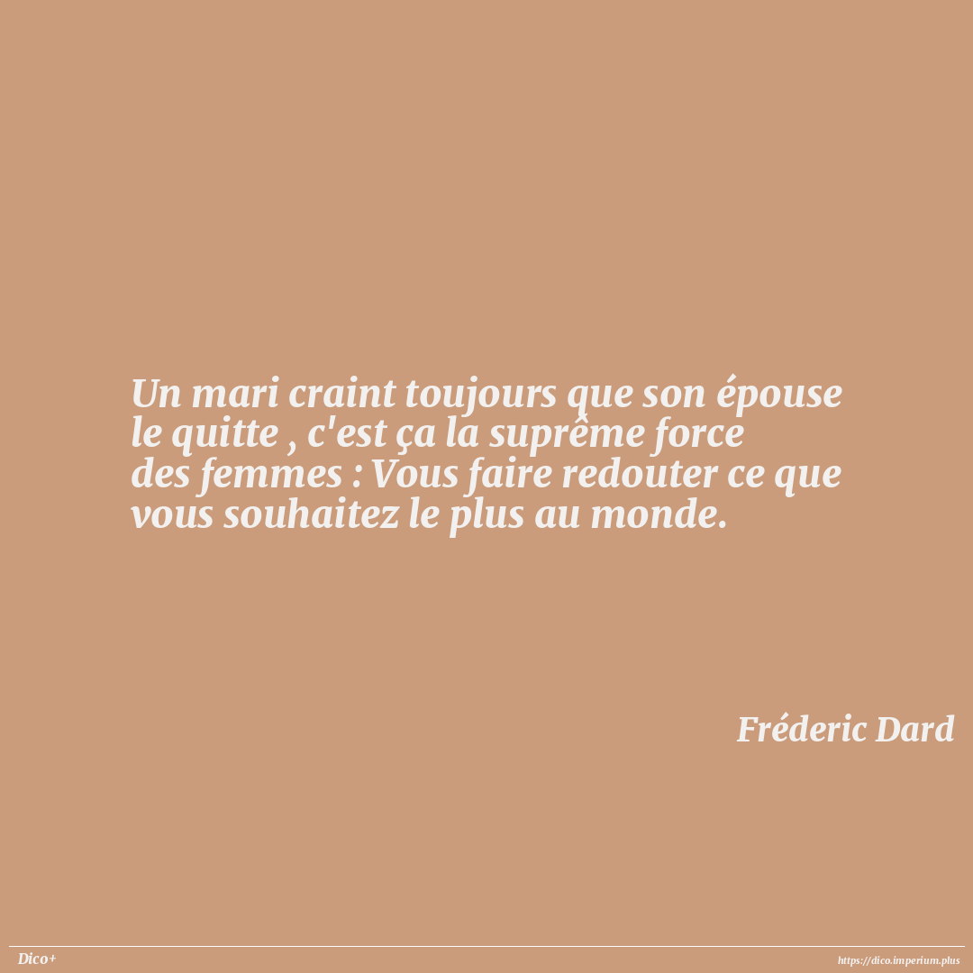 Un mari craint toujours que son épouse le quitte , c'est ça la suprême force des femmes : Vous faire redouter ce que vous souhaitez le plus au monde.