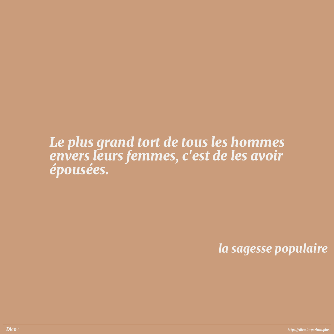 Le plus grand tort de tous les hommes envers leurs femmes, c'est de les avoir épousées.
