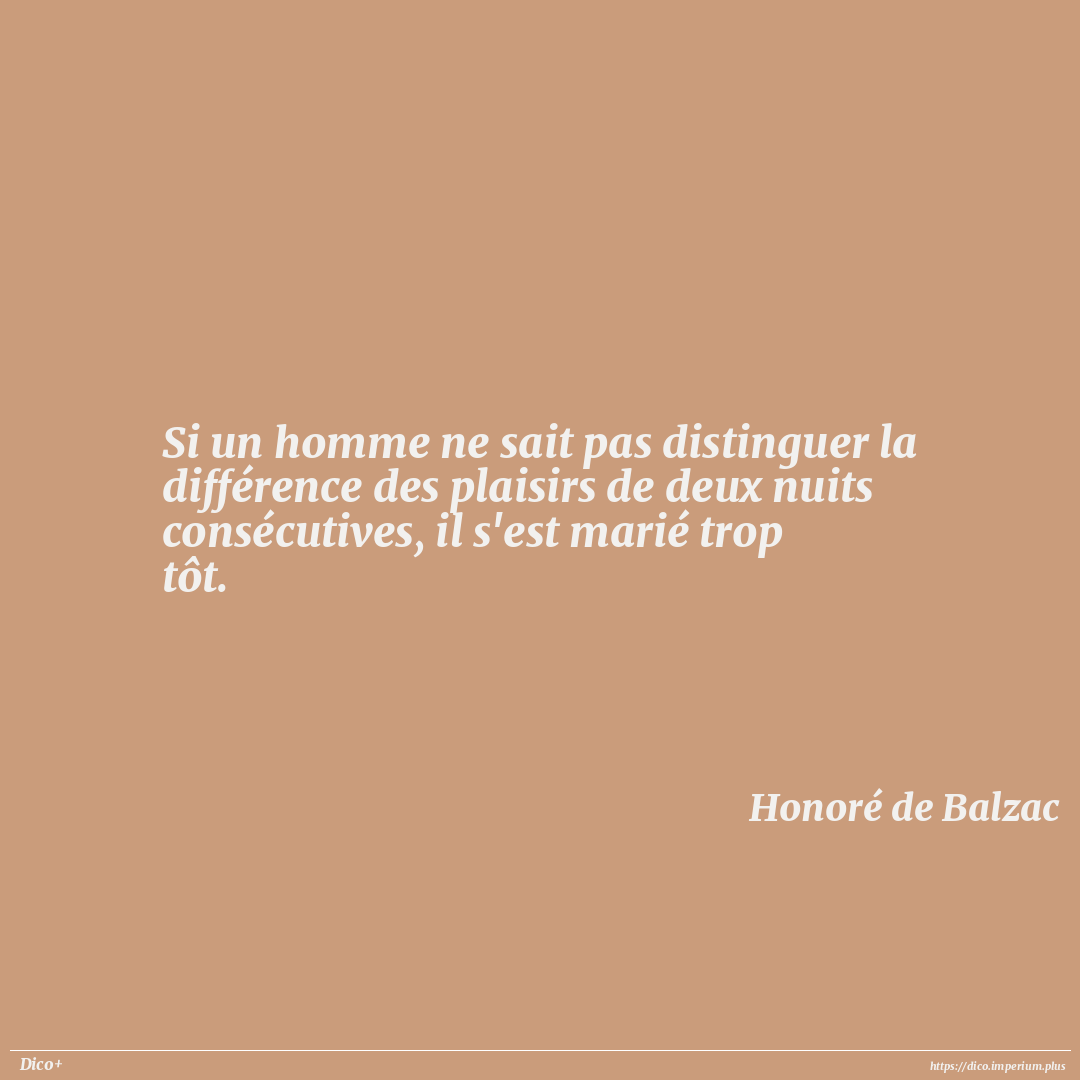 Si un homme ne sait pas distinguer la différence des plaisirs de deux nuits consécutives, il s'est marié trop tôt.