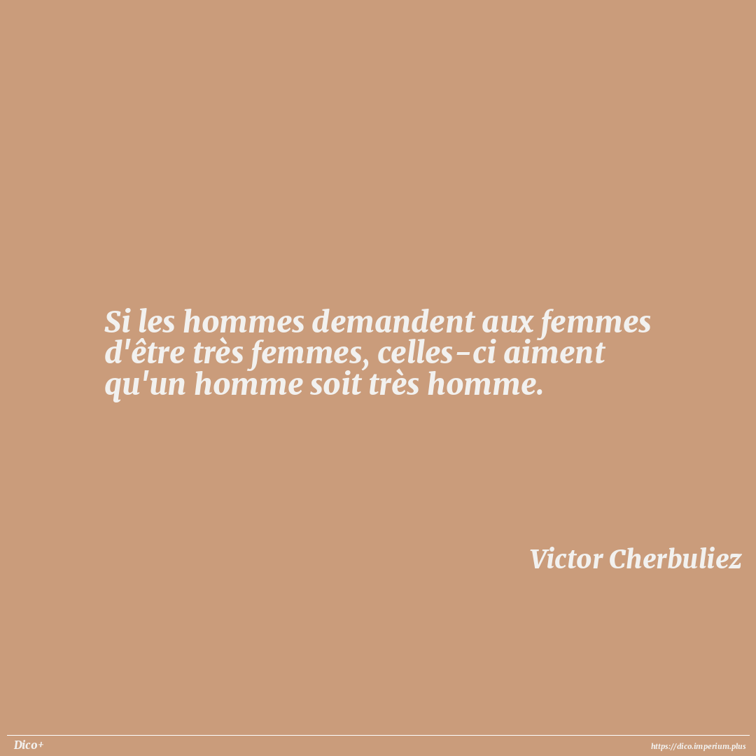 Si les hommes demandent aux femmes d'être très femmes, celles-ci aiment qu'un homme soit très homme.