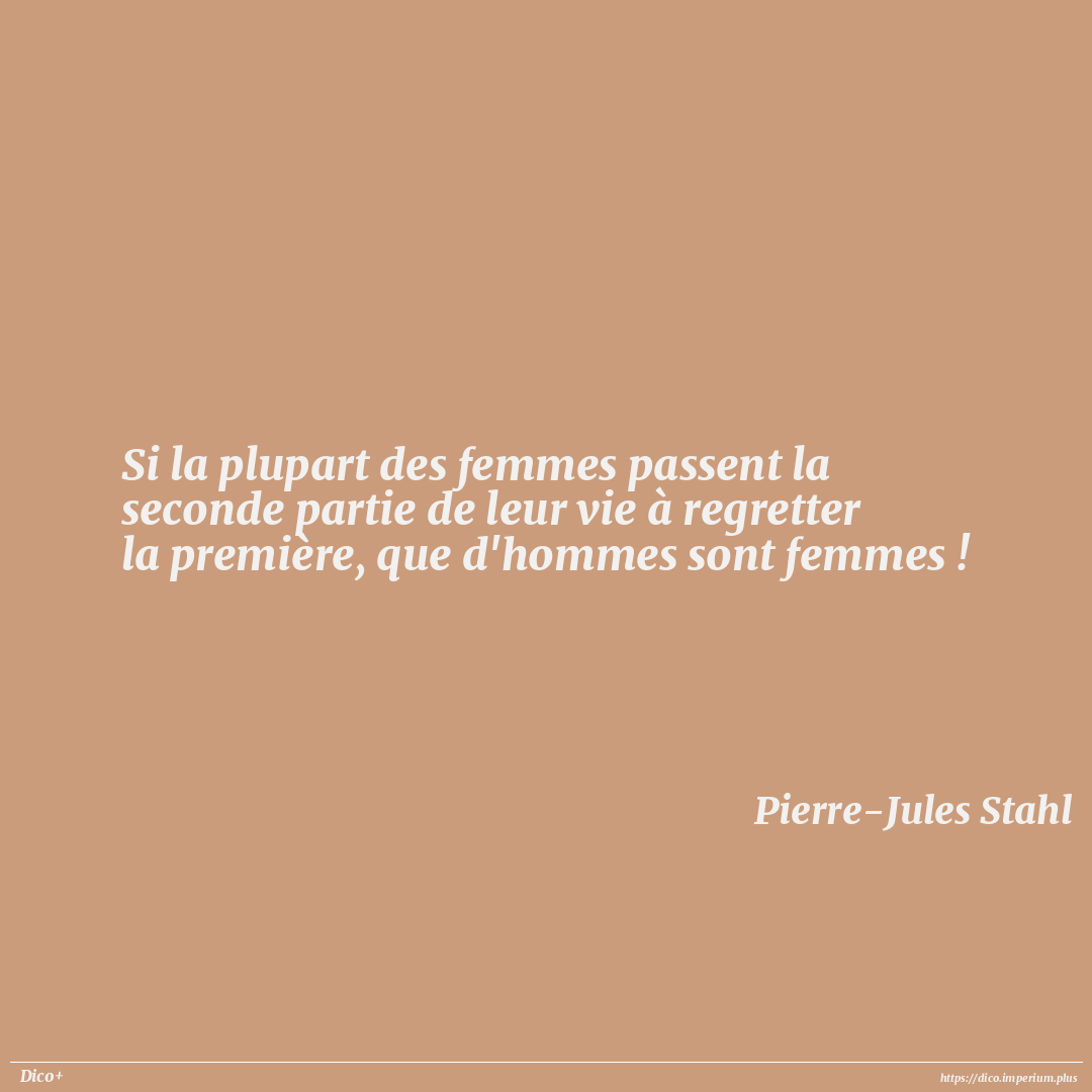 Si la plupart des femmes passent la seconde partie de leur vie à regretter la première, que d'hommes sont femmes !