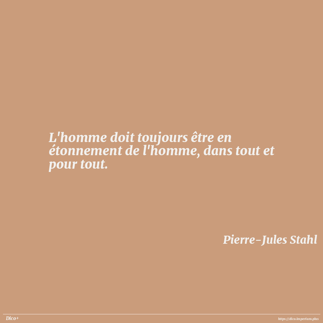 L'homme doit toujours être en étonnement de l'homme, dans tout et pour tout.