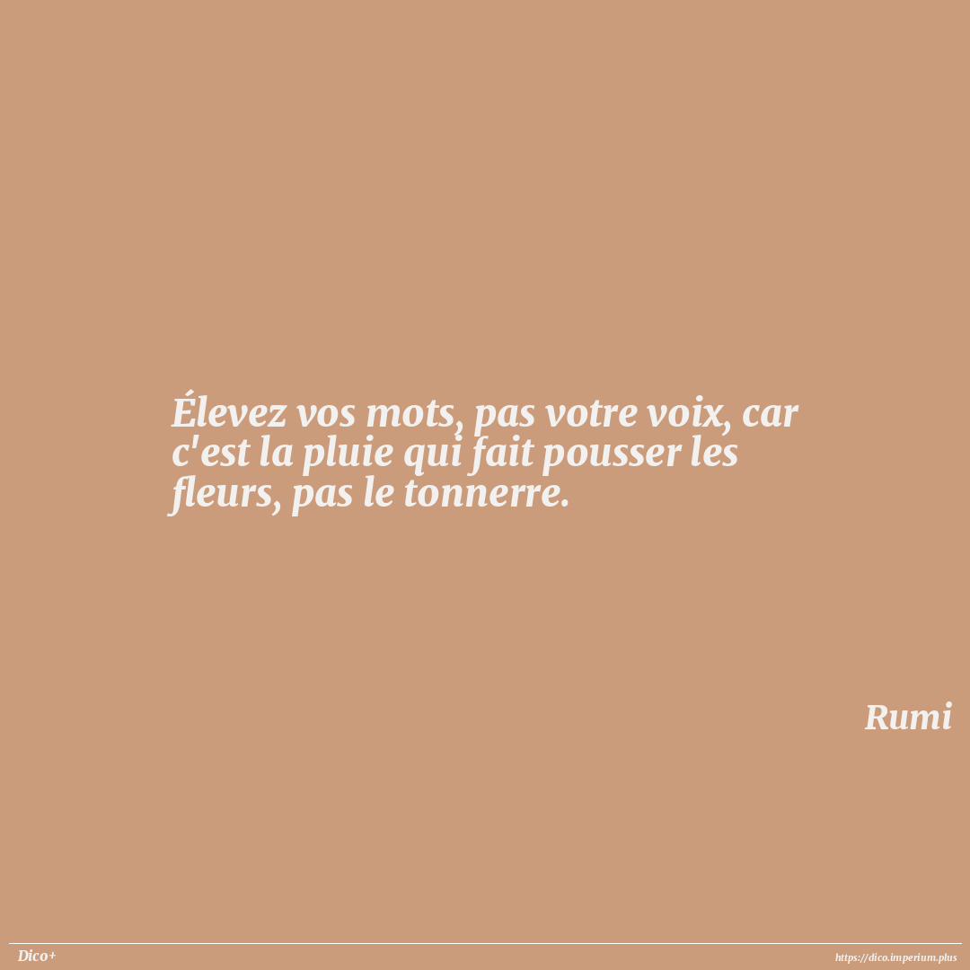 Élevez vos mots, pas votre voix, car c'est la pluie qui fait pousser les fleurs, pas le tonnerre.
