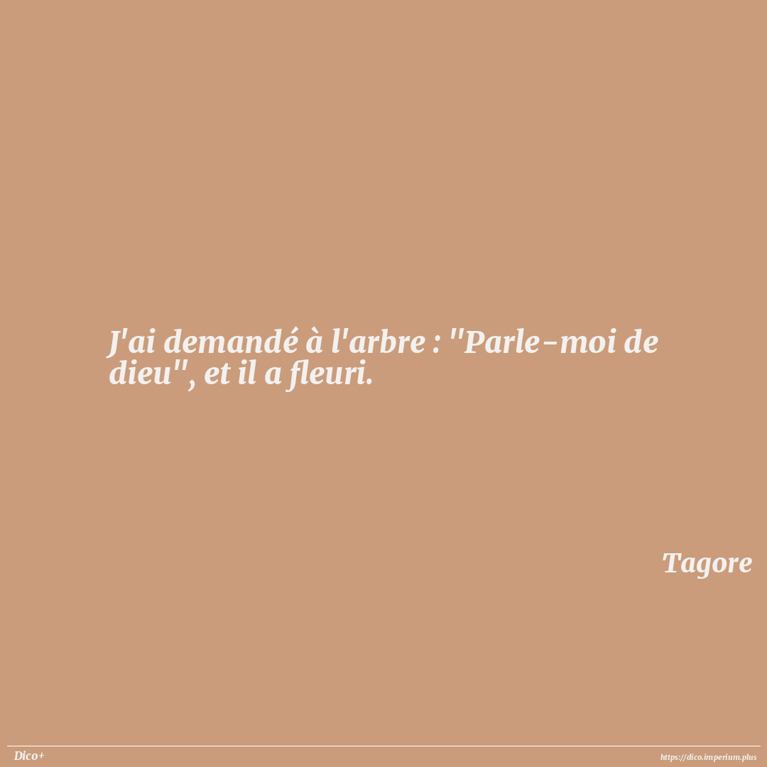 J'ai demandé à l'arbre : "Parle-moi de dieu", et il a fleuri.