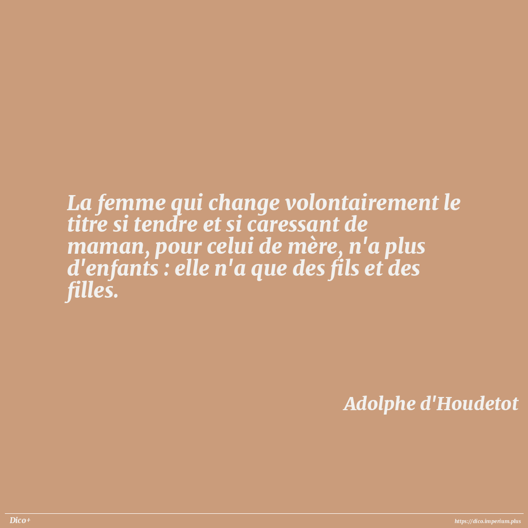 La femme qui change volontairement le titre si tendre et si caressant de maman, pour celui de mère, n'a plus d'enfants : elle n'a que des fils et des filles.
