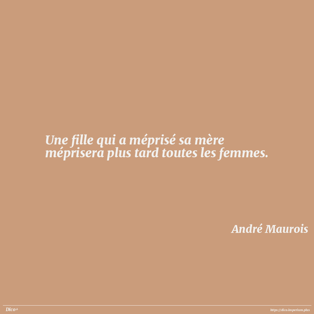 Une fille qui a méprisé sa mère méprisera plus tard toutes les femmes.