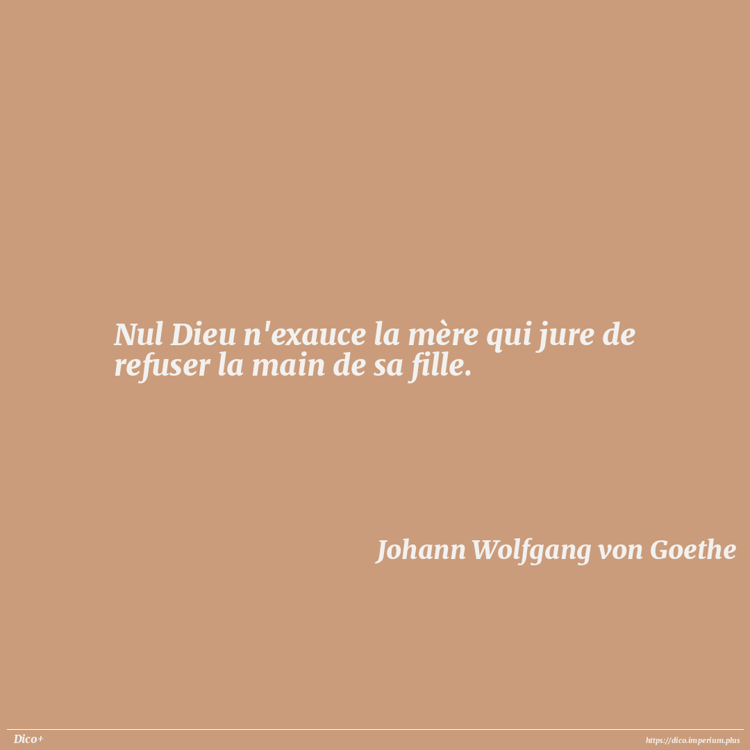 Nul Dieu n'exauce la mère qui jure de refuser la main de sa fille.