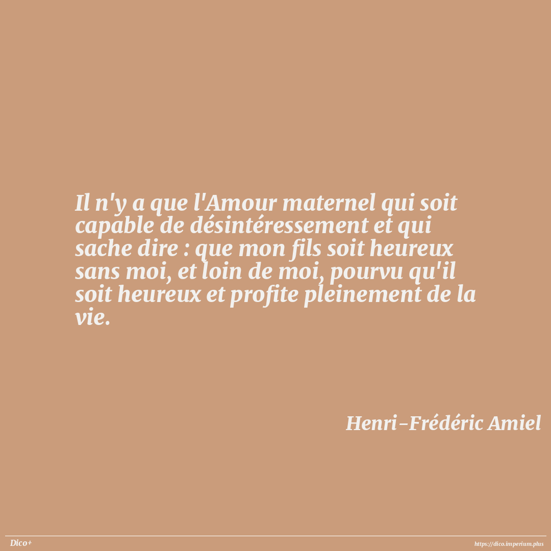 Il n'y a que l'Amour maternel qui soit capable de désintéressement et qui sache dire : que mon fils soit heureux sans moi, et loin de moi, pourvu qu'il soit heureux et profite pleinement de la vie.