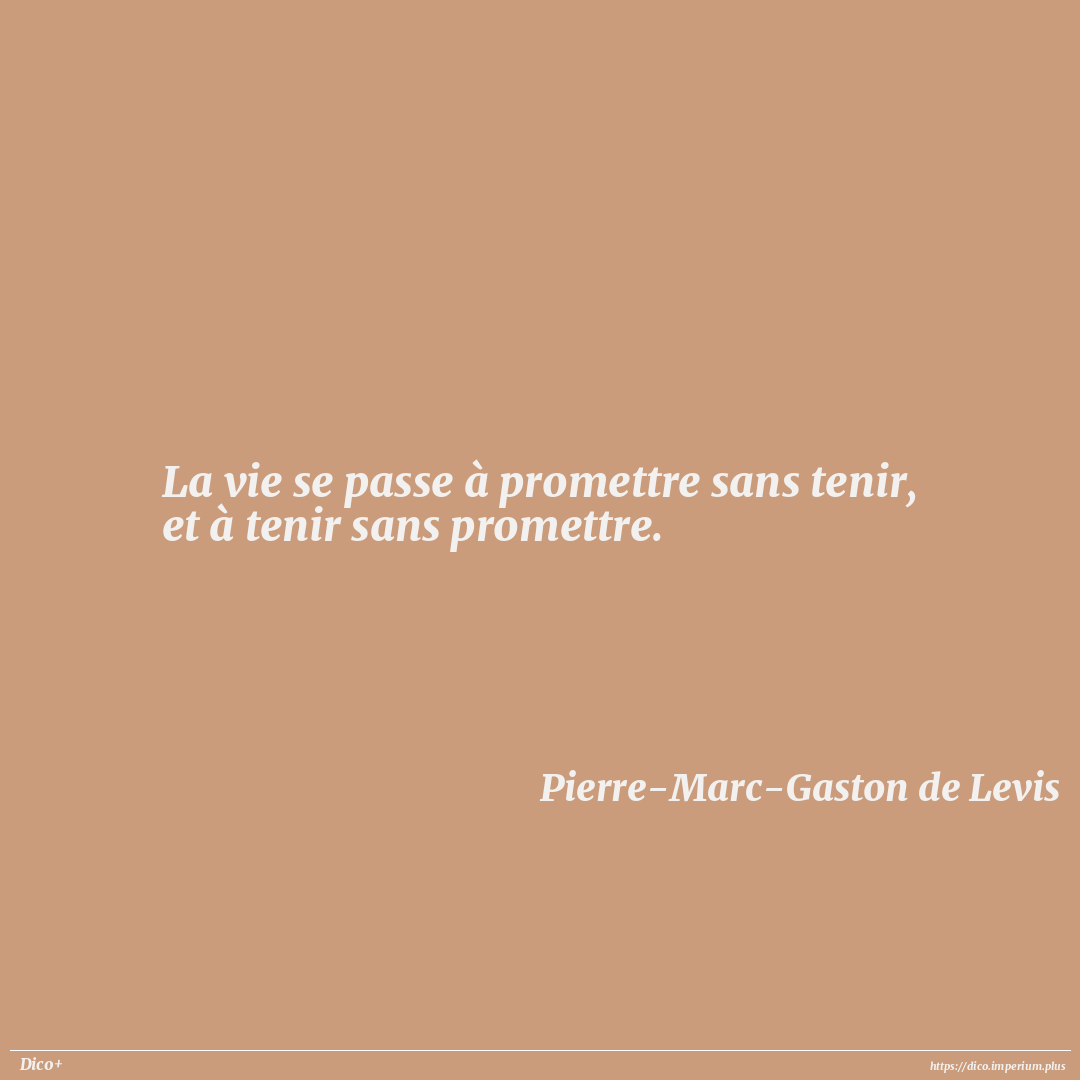 La vie se passe à promettre sans tenir, et à tenir sans promettre.