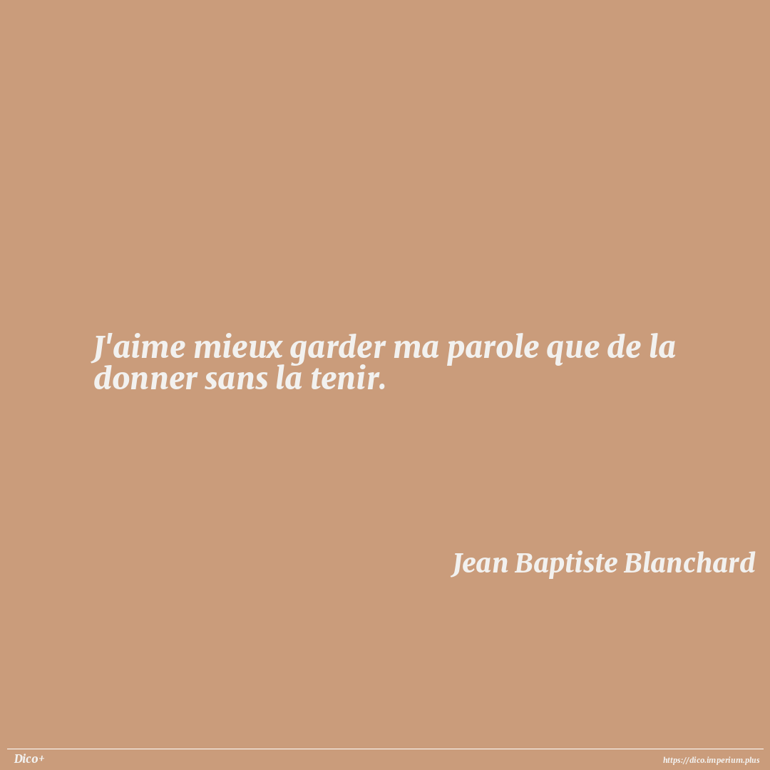 J'aime mieux garder ma parole que de la donner sans la tenir.