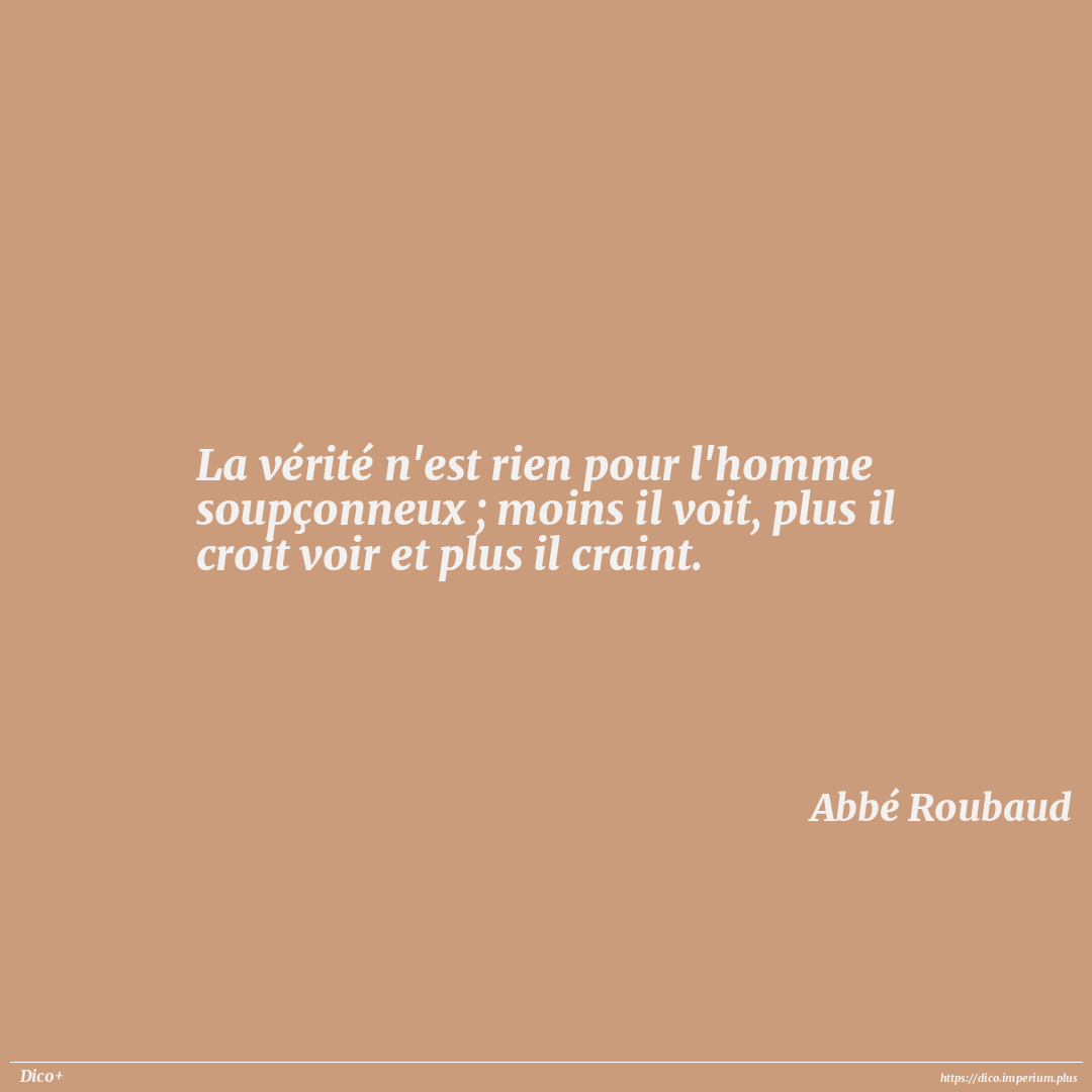 La vérité n'est rien pour l'homme soupçonneux ; moins il voit, plus il croit voir et plus il craint.