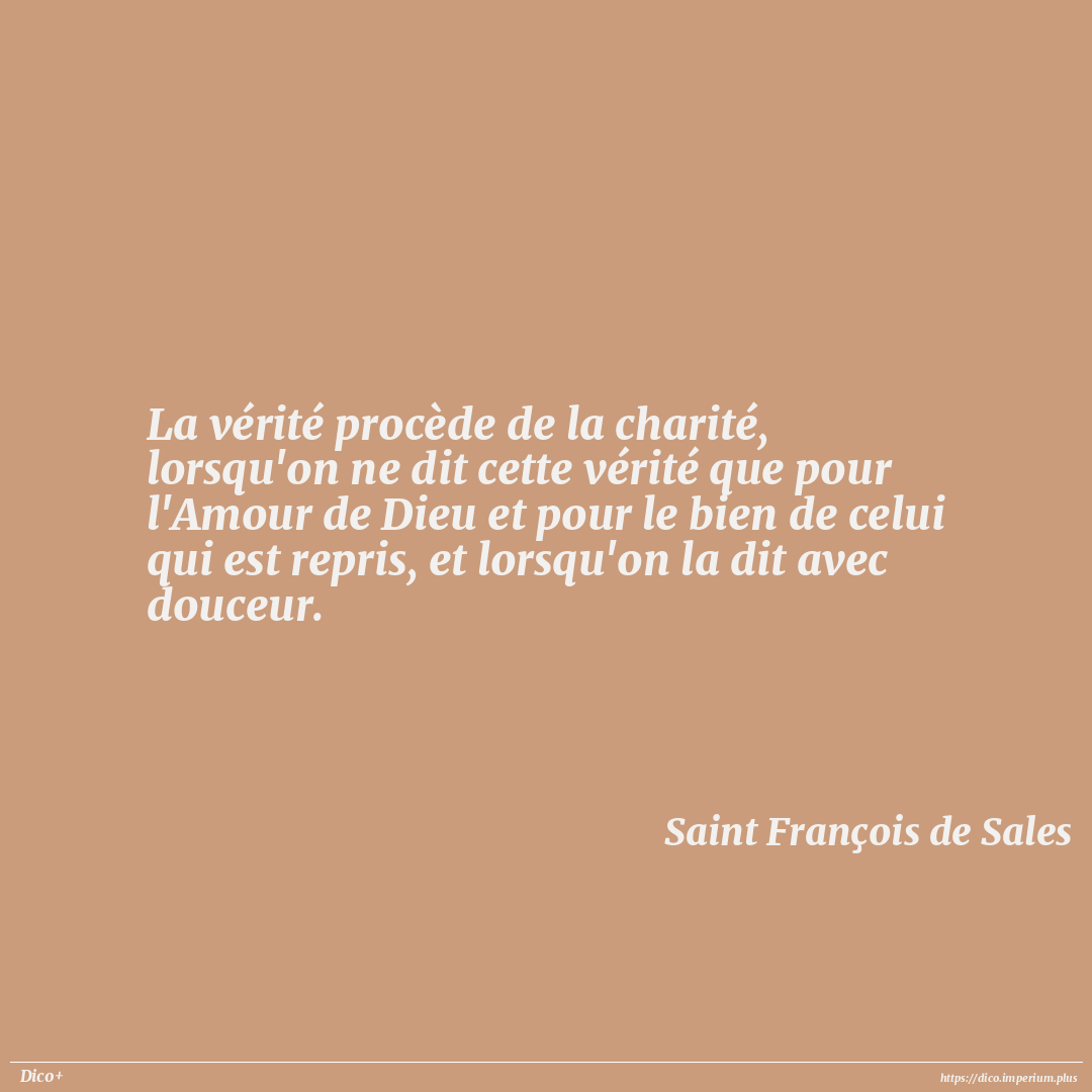 La vérité procède de la charité, lorsqu'on ne dit cette vérité que pour l'Amour de Dieu et pour le bien de celui qui est repris, et lorsqu'on la dit avec douceur.